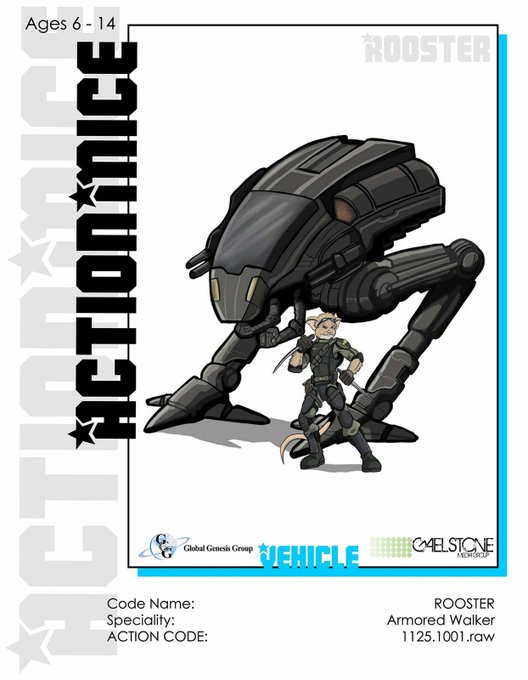 #ActionMice have a new rapid deployment vehicle #RDV, #TheRooster single soldier armored walker #SSAW. #ItsActionTime. @GeekFilter
