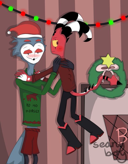 Happy holidays everyone! #Blitz #Blitzo #Stolas #HelluvaBoss #HelluvaBossBlitzo #HelluvaBossBlitz #HelluvaBossStolas #Stolitz #Stolitzo
