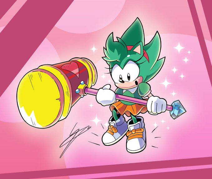 Super Amy with her Ultra Piko Piko Hammer that @superscourge300 and I theorized. #Sonic #SuperAmy #digitalart #sparkle