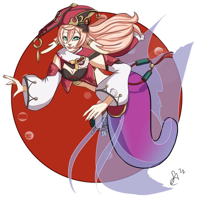 #365artchallenge #art #genshinimpact #xiangling #guoba #red #pyro #redpanda #digitalart #mermaid #mermay2021