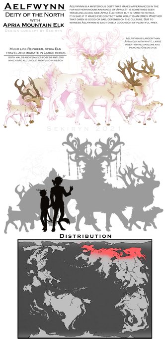 Large herds of Apria Elk are a welcome sight along the taiga/tundra towns of the Adura Continent. They, and their deity, are a staple in most northern cultures as a resource and spiritual connection. theyre cute too!