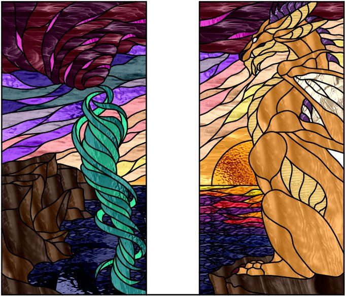 Here's my most resent personal Stained Glass pattern, for my own personal pleasure. Thanks you so very much to the lovely @rawileon for their collaboration on the phenomenal dragon sketch used, that was bases on my very own Sona.