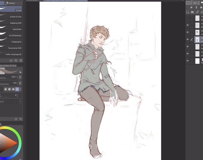 hmm why did I think doing a color sketch of my ff14 bby using clipstudio pencil brushes only was a good idea ...?