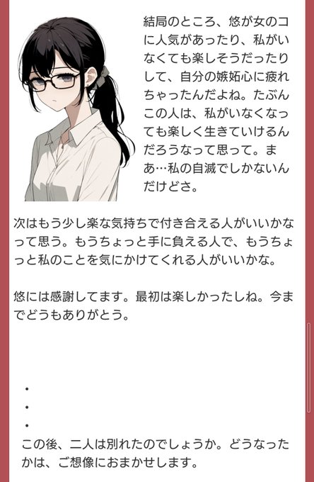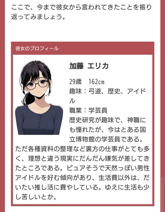 あわーわが配信でやってた架空彼氏彼女のやつ、試しにやってみたらバチクソ好みの彼女が出来て怖くなっちゃったし、フラれる時の言葉も『あぁ…なんか言われそう…(嫉妬されるのは分からんが)』って納得しちゃったし…