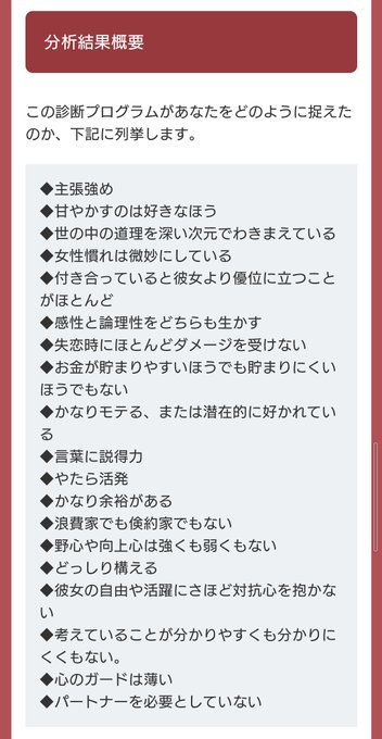 分析結果の最後「パートナーを必要としていない」で泣いちゃった😭