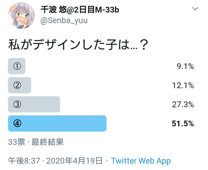 誰のキャラデザだゲーム答え合わせ!半数の方の予想通り、僕がキャラデザしたのは④番の子でした!