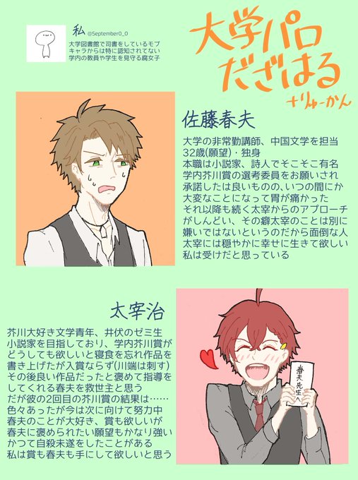 最近流行りの相関図に乗っかった大学パロのだざはる(+龍寛) こんな!学パロ!読みたい!!