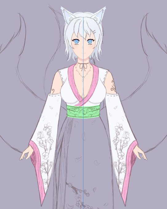 Here is the lovely progress of my adoptable vtuber Jundo Byakko!