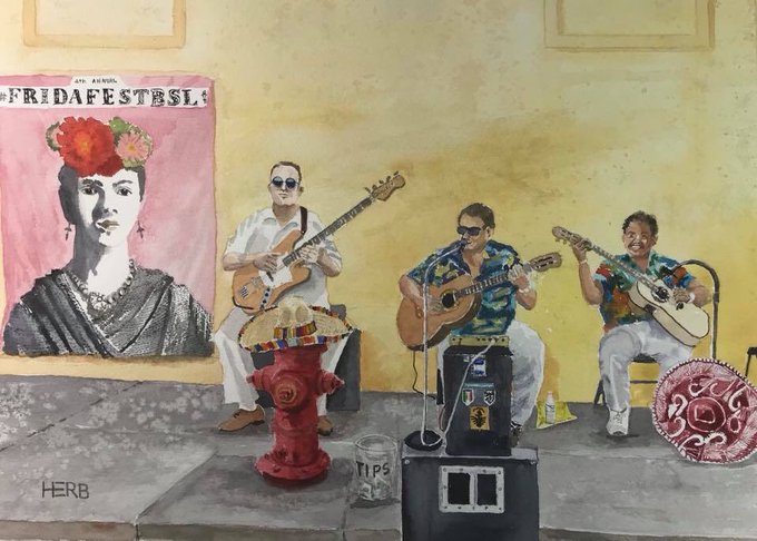 #herbwilley #fineart #fineartist #transparentwatercolors #dancers #nusicians #music #songs #instruments
