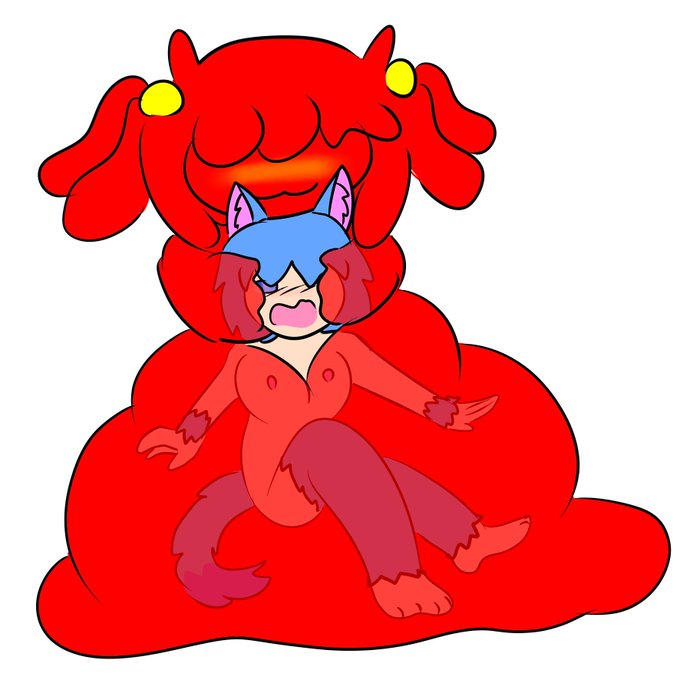 The slimegirl enjoys a fluffy meal~ *absorb~*