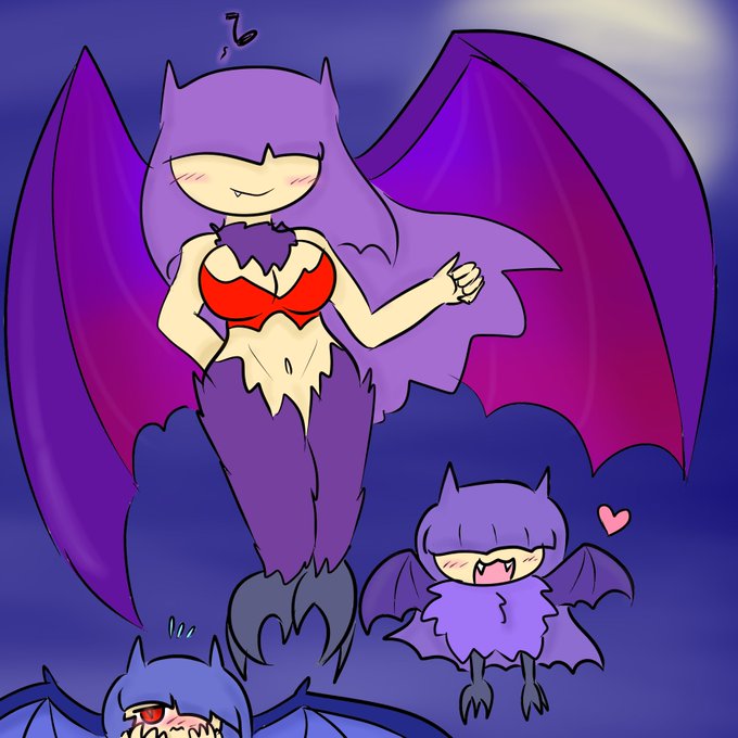 A family of bat monsters. They come out to play at night, but they are friendly.