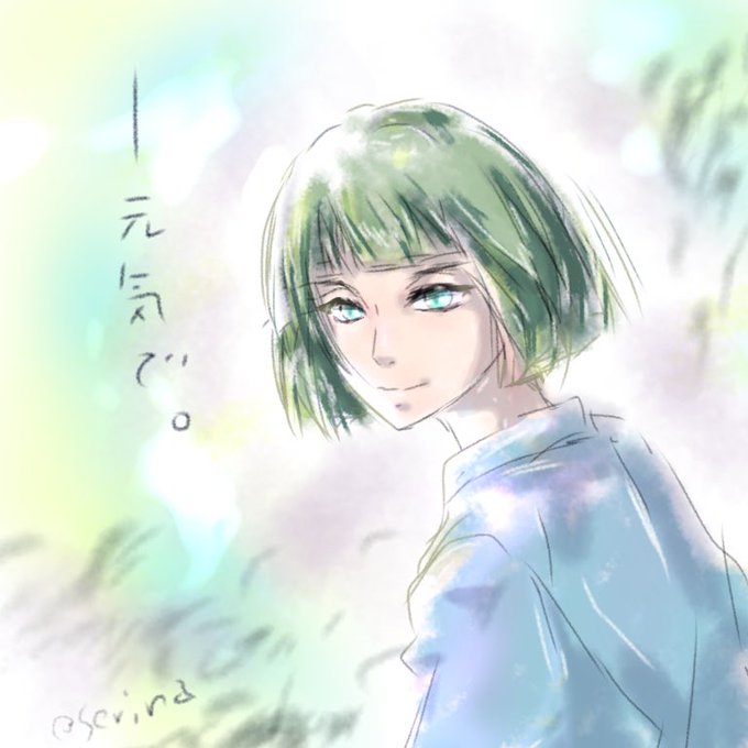 千と千尋の神隠し、後半ちらっとみたら何度も見たのに見とれてしまった。最後、振り返るな、と千尋に念を押して手を離した後のハク様はこんな感じかなあといつも切なくなるの落書き。