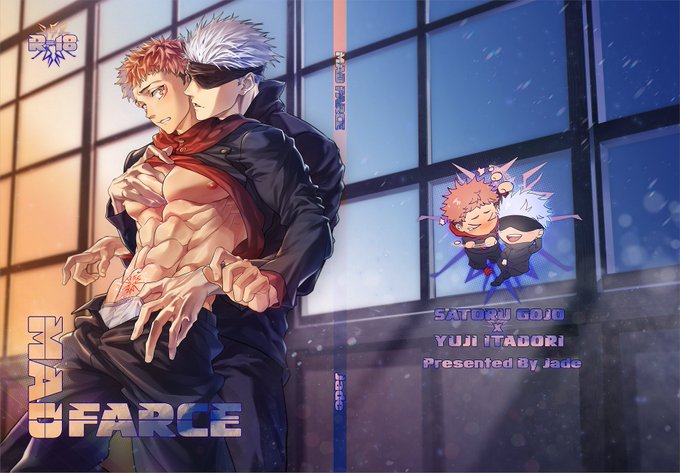 スレイさん(@Bluedarknights)のJBF2024の五悠新刊の表紙を描かせて頂きました。5Uをモチーフにした呪淫のデザインや裏表紙のSDの二人の楽しく作業しました。よろしくお願いします!!😆