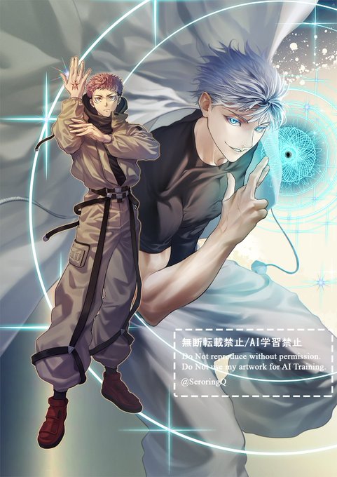 スレイさん(@Bluedarknights)のスパコミの五悠新刊の表紙を描かせて頂きました。大好きなゲームのパロと聞いてとても楽しい作業になりました。よろしくお願いします!!😆