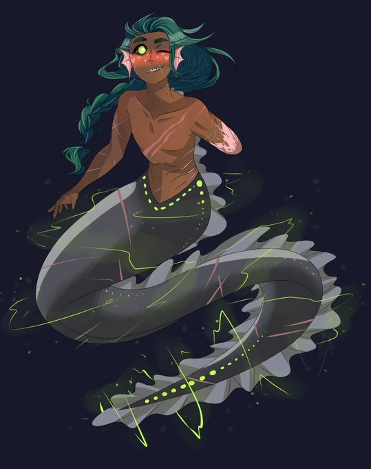 Cutting it close for #mermay , but here's Rigby as an electric eel, does that count???