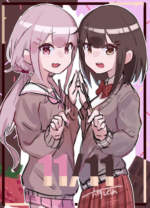 どっちが好き??🍓×🍫 #イラスト #ポッキーの日2022