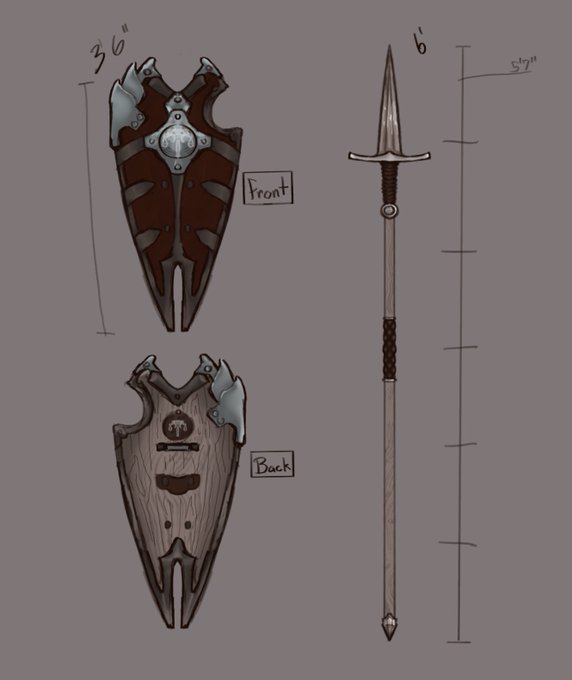 Some shield/spear design for your viewing pleasure! My husband is working on a new dnd character and I’m providing visual aid 😌