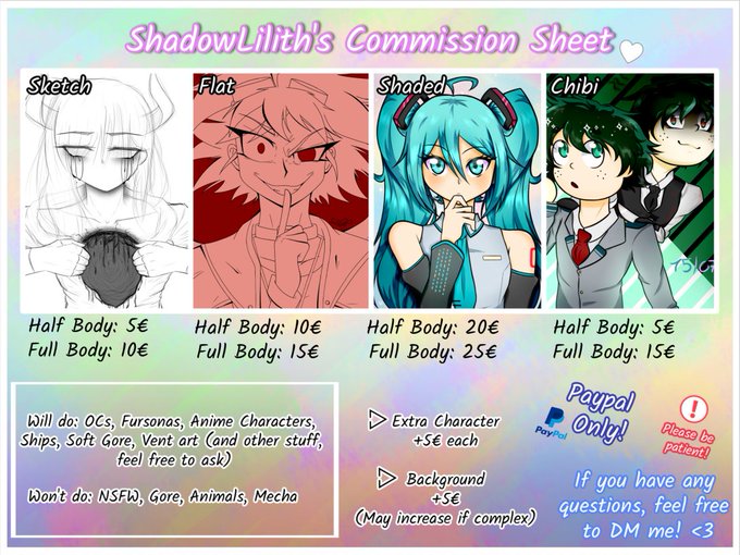 I've been wanting to do commissions for a long time since people have liked my art for some reason and I want to start saving money for the future and what might come.