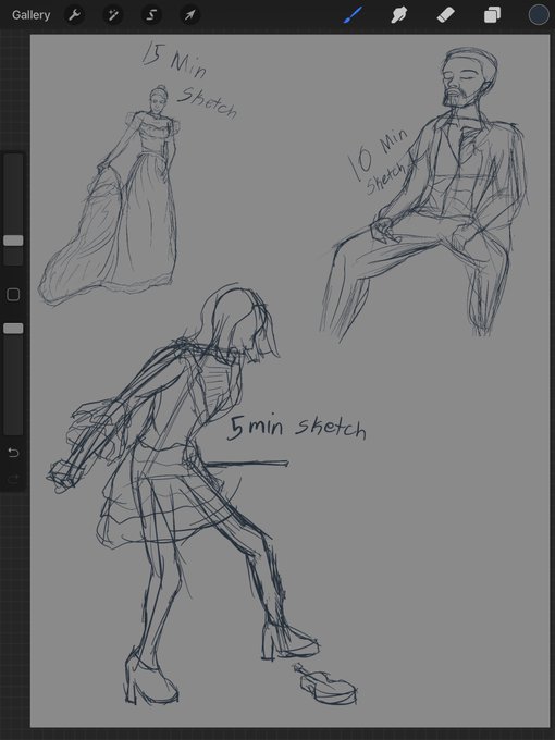 Some quick practice sketches for poses an timing myself to see how much detail I can put in the time limit