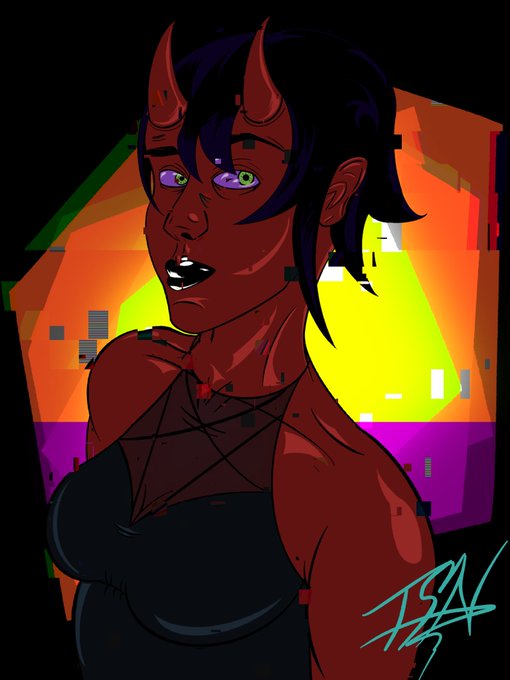 Here’s lily, I don’t know I felt like drawing a demon an mess with the glitchy settings in procreate