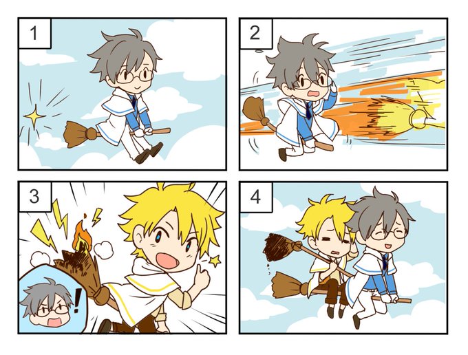 สองพี่น้องขี่ไม้กวาด ถ้าวาดfull scaleจะดูประหลาดมากเลยวาดเป็นSDละกัน