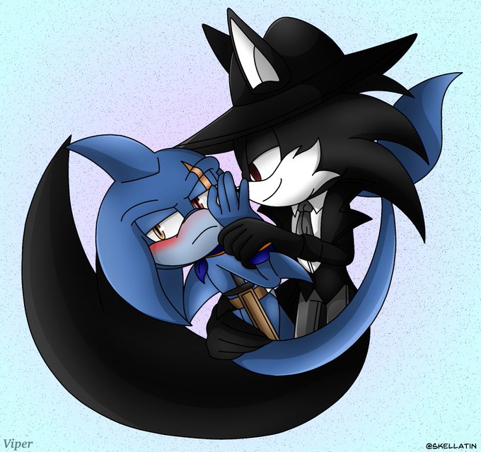 Mine and @/skellatin’s ship, Onyx and Typhoon 🖤💙