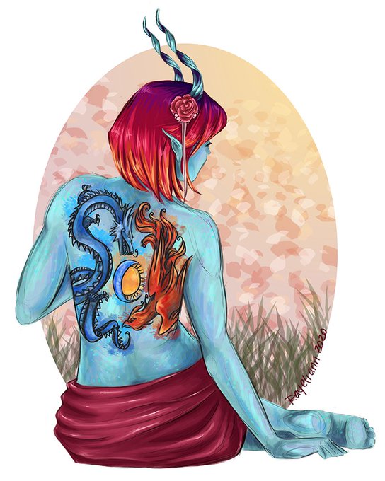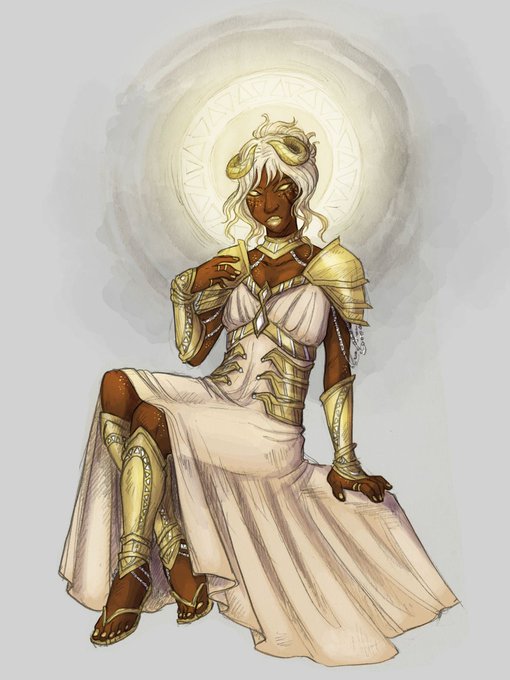 @PixieInktvis And Nephrandis Mishani- Redemption Paladin Aasimar with a hint of tiefling. Her family are essentially sin-eaters who preserve the balance of good and evil in the world. They are from a long line of angel descendants, and an ancestor made a deal with a devil for this ability....