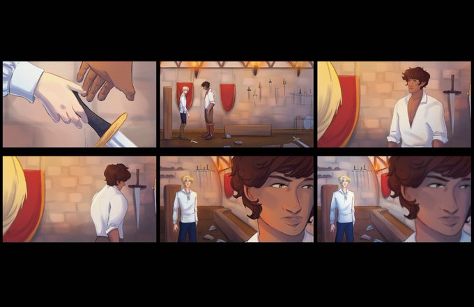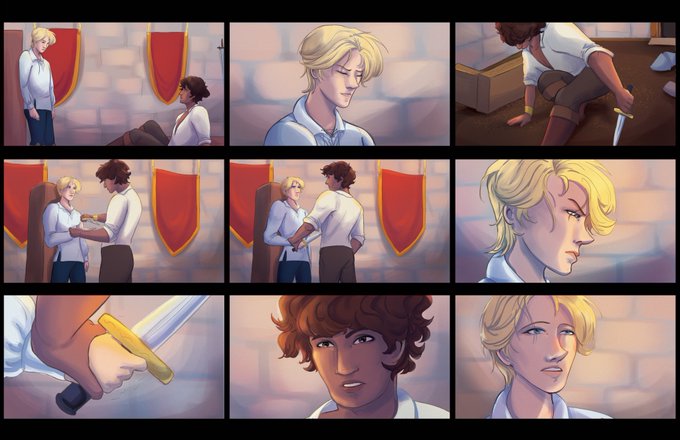 The second part of my faux visual development pack for the Captive Prince book series was focusing on storyboards and color scripts for a scene. I chose one of my favorite scenes from the series!