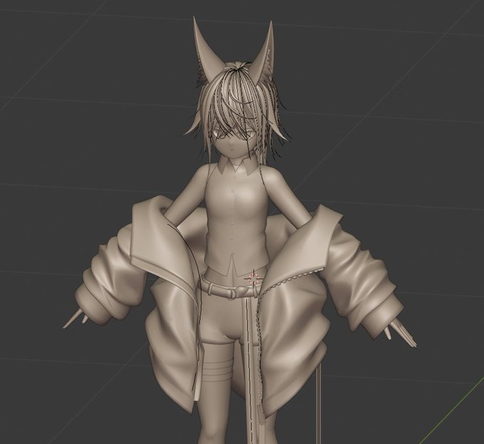 Pelviaのジャケットは左右対称に作ってからラティスで崩して作った ミラーとラティスを適用する前にUV展開してるのでトポロジーとUVは左右対称なままメッシュを非対称にして作れる