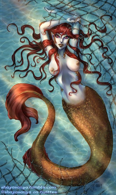 My half of an quick art trade with @awrightartistry - Their Tiefling Sorceror Fish. I love painting glittering dresses.