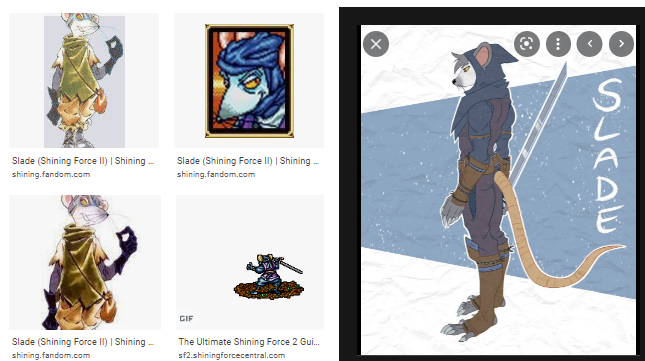 Twitch (league of legends), Slade "Ninja outfit" (shining force 2), Cluny the Scourge (redwall), Silas (ghost of a tale.)