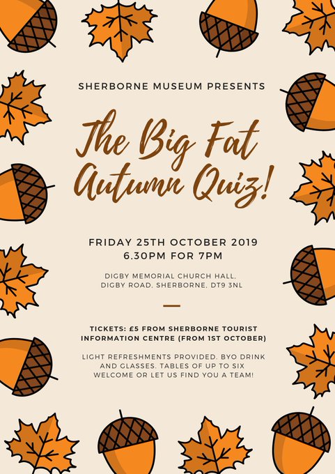 Tickets on sale for our Big Fat Autumn Quiz at Sherborne TIC! @SherborneTIC @VisitSherborne @VisitDorset @DorchesterTIC