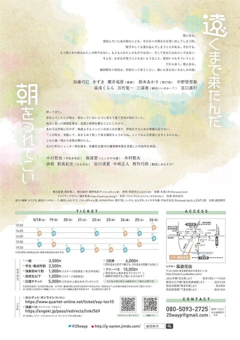 公演ハッシュタグは『遠く〜』『朝を〜』共に #劇団晴天 です。