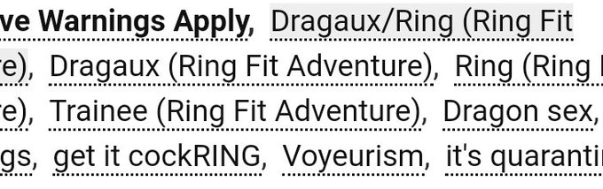I started playing ringfit, saw dragaux, immediately paused it and checked ao3.