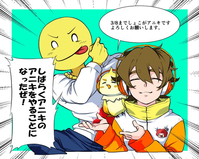 まろリク『いんぽぽ🐦👻』 すでに二人ともペアいんぽぽ絵シリーズで描いていたので、ちょっと毛色の違う感じで描かせていただきました!