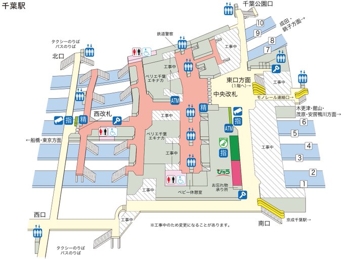 千葉駅も変わってて、Y字の分岐の上に建ってて幅があり、5路線あるのでホームは10面、東京方面の快速は8面のどこかから出ます。まさかのランダム。