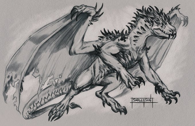 Also by @Skollyson is this art of one of my dragon species. I love the tattered wings!