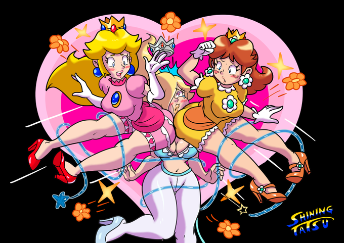 Commission #2 for @weegee989. Here we have Peach and Daisy using their bomber attack on each other, but it looks like Rosalina got caught in the middle of things. Poor old space mom can't catch a break.