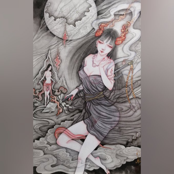 #2022年自分が選ぶ今年の4枚 今年は絹本に関しては妖女系の作品が多い一年となりました、来年はもう少し可愛い絵も描きたいな😓✍️