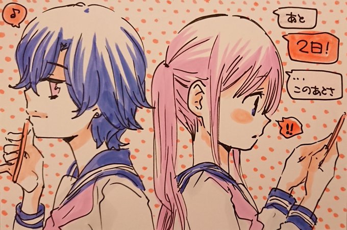 今日明日「恋愛彼岸」のイラストをアップしたあとこのイラストのプレゼント企画も考えています