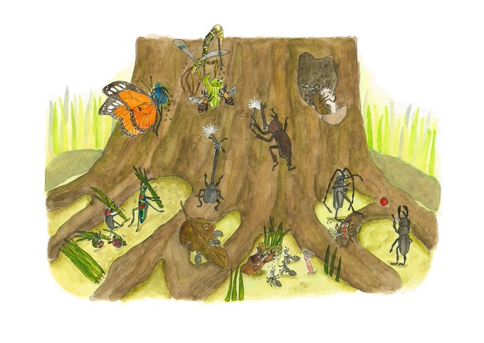 虫過去絵です✍️虫は主に絵本で展開しています。HPで絵本全ページ読めるようになっていますが、こちらでも連投する形で1枚1枚載せていきたいと思っています📖