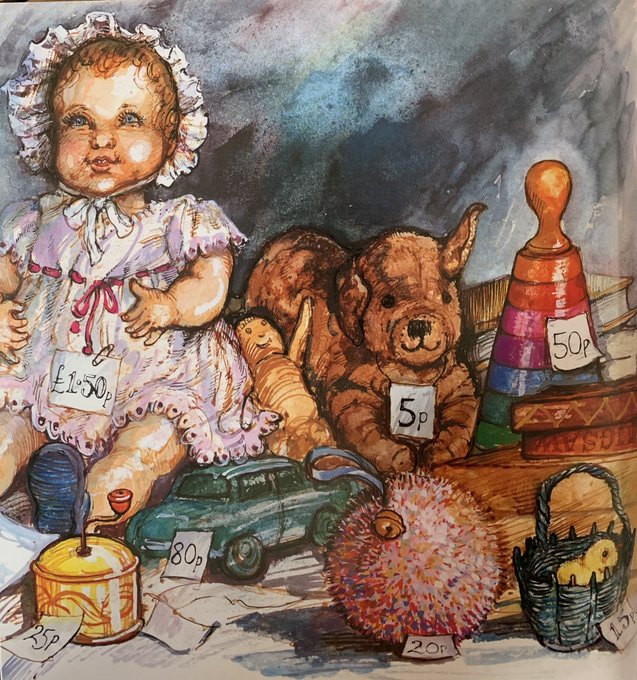 One lady had a Toy Stall, full of knitted ducks and cars and baby dolls in bonnets. And there, at the very back of the stall, behind a lot of other toys, was - Dogger!