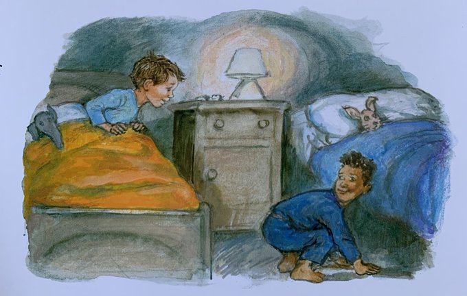 That night Dave had Dogger in bed beside him. Bella was practising somersaults.