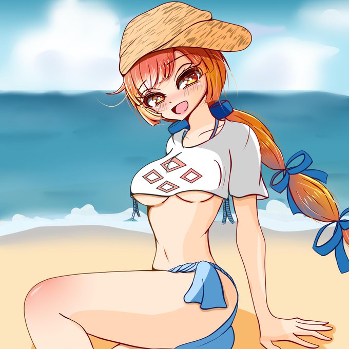 コン!新城娘の〔夏〕富山城ちゃんなの!富山湾に近かったり神通川を利用して建てられ【浮城】の別名もあるように海遊びも川遊びもお任せあれ、との事なの~♪水着姿が輝いてるなの!ぜひぜひお迎えして欲しいのー! #城プロ