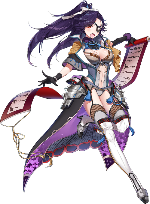 コン!注目招城中の高遠城ちゃんなの!大改修をした武田信玄君の軍師『山本勘助』君をいめーじしている城娘なの♪隻眼だったので高遠城ちゃんも眼帯をしているなのー。当てずっぽうなんかのヤマカン(山勘)も勘助君が策に長けていてごまかし、と言う意味からきている説もあるなの! #城プロ