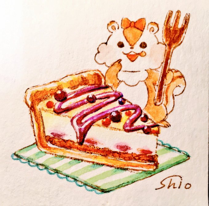 今日はリスの日と聞いて、過去絵ですがチロリス主役のイラストを💖食べ物がある所にリスは現れます笑