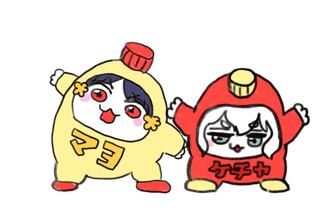 ねこぎょーざ(@nekogyo122 )さんが激かわちびちゃんず描いてくれました!!!!!!ぎゃんかわ😭🙏✨ありがとうございます!!! #ちびじゅんあい