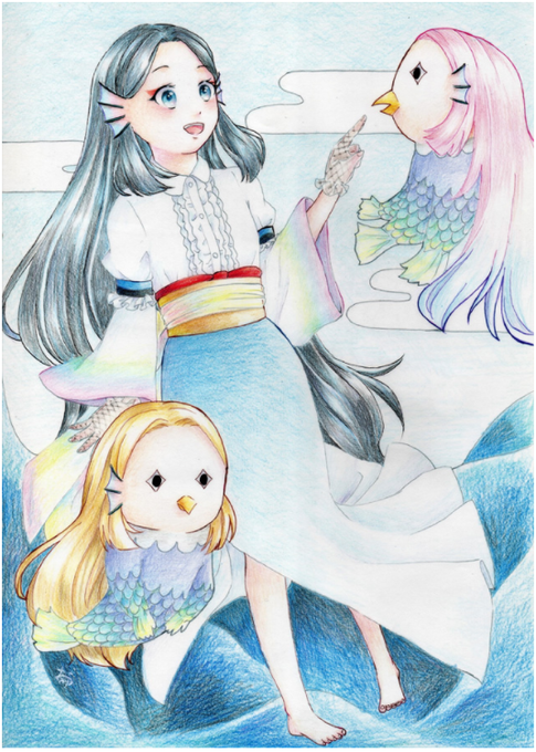 藤枝所HPの「gallery藤枝」で装備品を擬人化して絵を描いてくれている、ペンネーム「葦原おみず」が #アマビエ を描いてくれました。