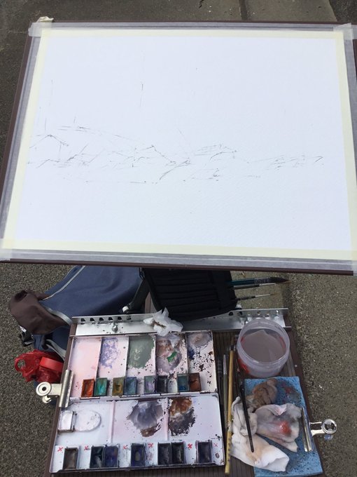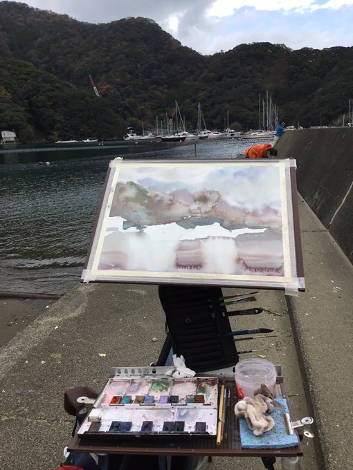 安良里港 #2 WATER FORD ROUGH F6 先日のスケッチツアー2日目の安良里港で描いていた 2枚目の絵は、突然の雨で途中で片付けてしまいました。 今回、その続きを描きました。