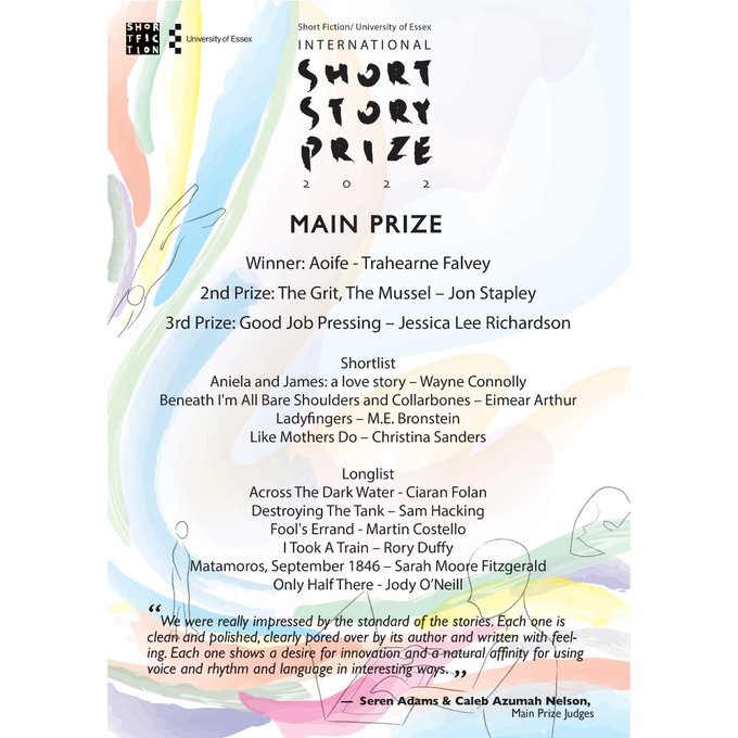 The winner of the SHORT FICTION/UNIVERSITY OF ESSEX INTERNATIONAL SHORT STORY PRIZE 2022, supported by @LiFTS_at_Essex, is @TrahearneF, with the haunting, powerful & utterly beautiful 'AOIFE'!!! Read it here, brilliantly illustrated by Rebecca Cottrell: https://t.co/ULlmPA8xdG